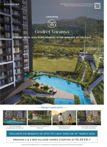 Godrej Varanya in Kharghar is a luxurious residential project by Godrej Properties, offering Premium 2 & 3 BHK apartments with modern amenities. Located in Sector 5A Kharghar Navi Mumbai, the project spans 6.5 acres Land Parcel